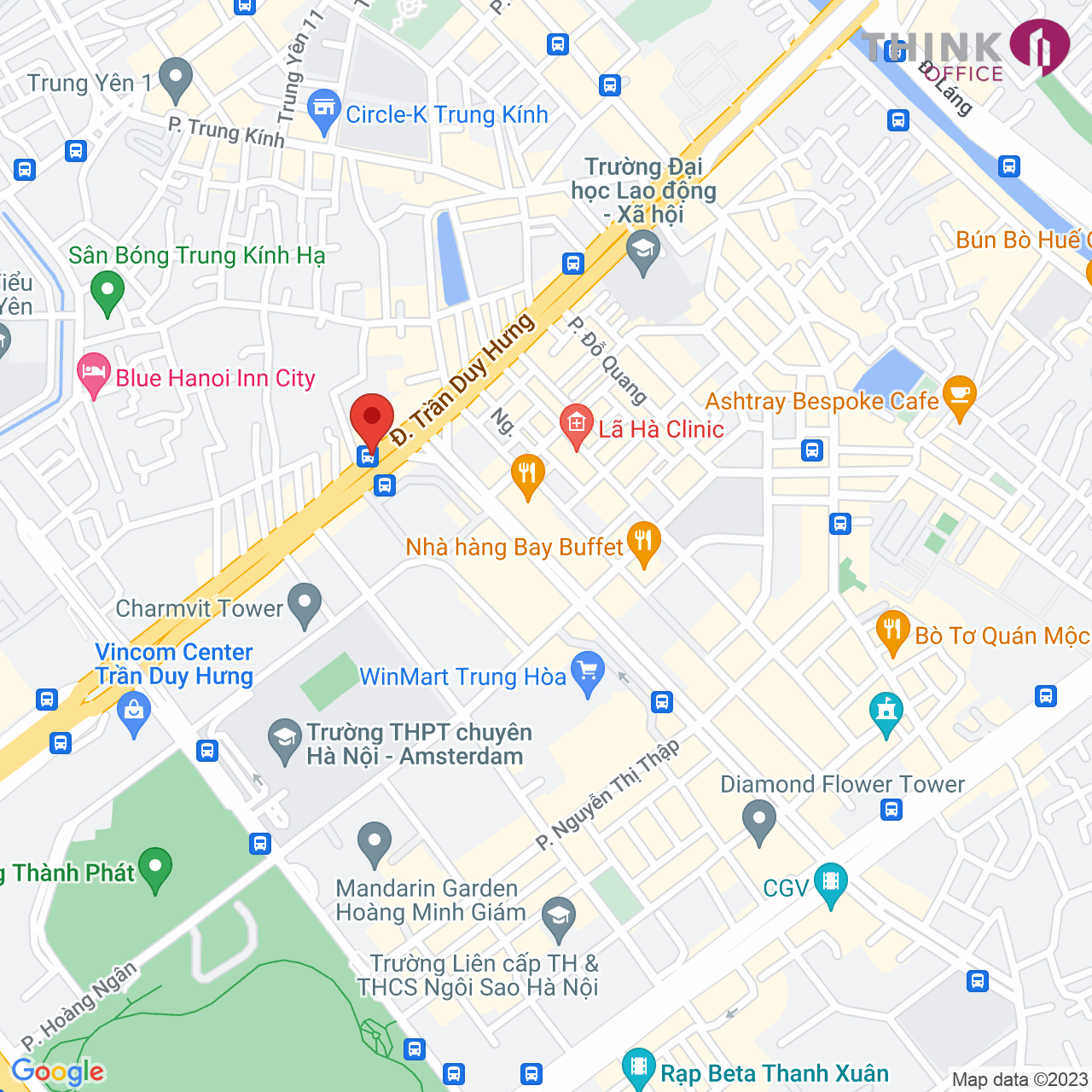 - Cách 1km để tới ngã tư giao cắt Hoàng Đạo Thúy – Trần Duy Hưng